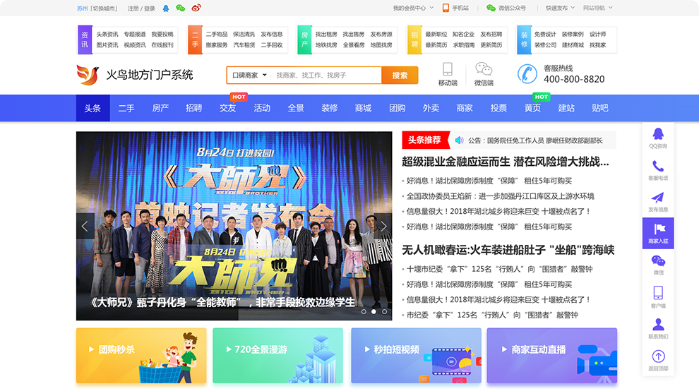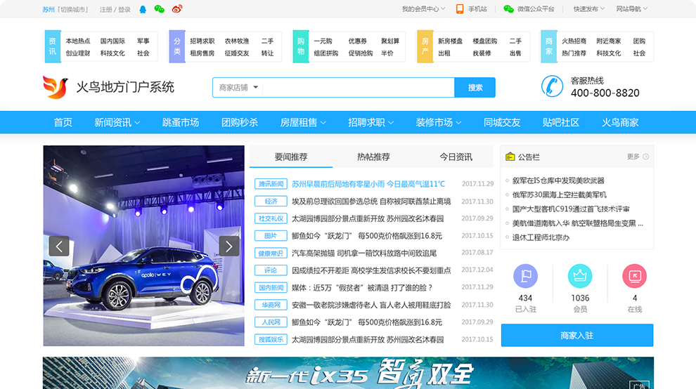 发布分类信息,支持自定义多级分类,分类属性标签自定义,发布信息支持图文、VR全景、视频介绍,付费置顶、付费刷新、智能自动刷新、